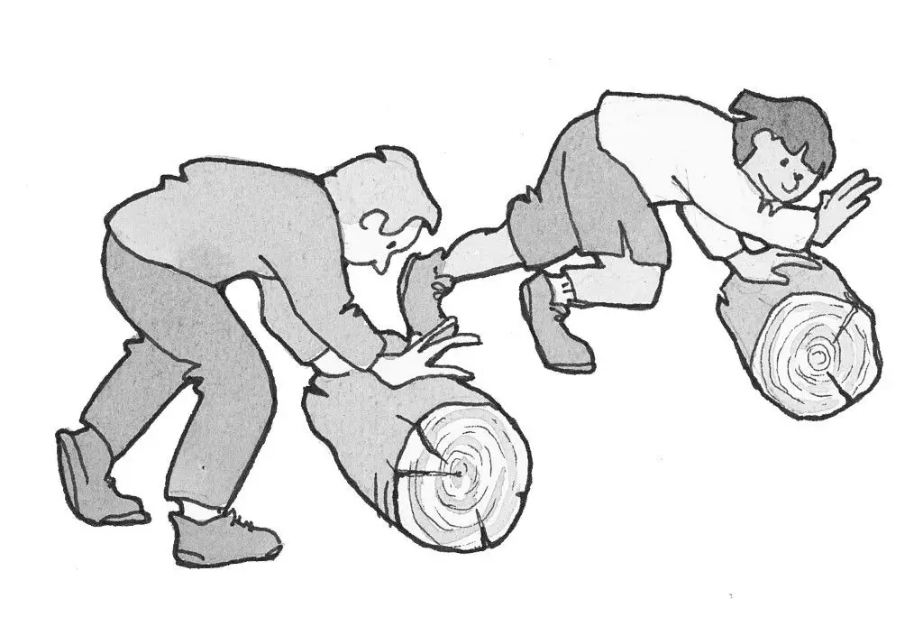 På to parallelle stammer skal I balancere med en fod og en arm på den ene stamme - og den modsatte fod og arm på den anden stamme. Udfordringen bliver større, jo længere der er mellem stammerne. Balanceevnen skærpes, og mange af kroppens muskler i ben, arme og krop styrke.