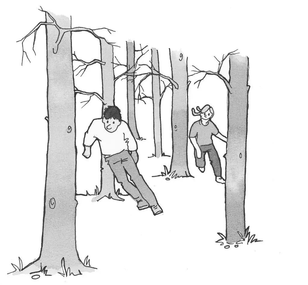 I et område med forholdsvis tæt bevoksning laves en lille slalombane, hvor der kan zig-zagges mellem træerne. Kæmp mod hinanden eller på tid. Her trænes konditionen.